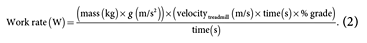 Although less precise than cycle ergometry, peak work rate (power; in J/s or W) can be calculated from a treadmill ergometer using final percent grade and speed of the treadmill, time on the final stage, patient's body mass and standard gravity (g; 9.81 m/s2; equations 1 and 2).